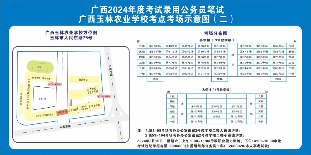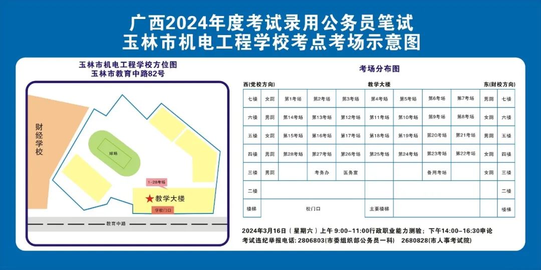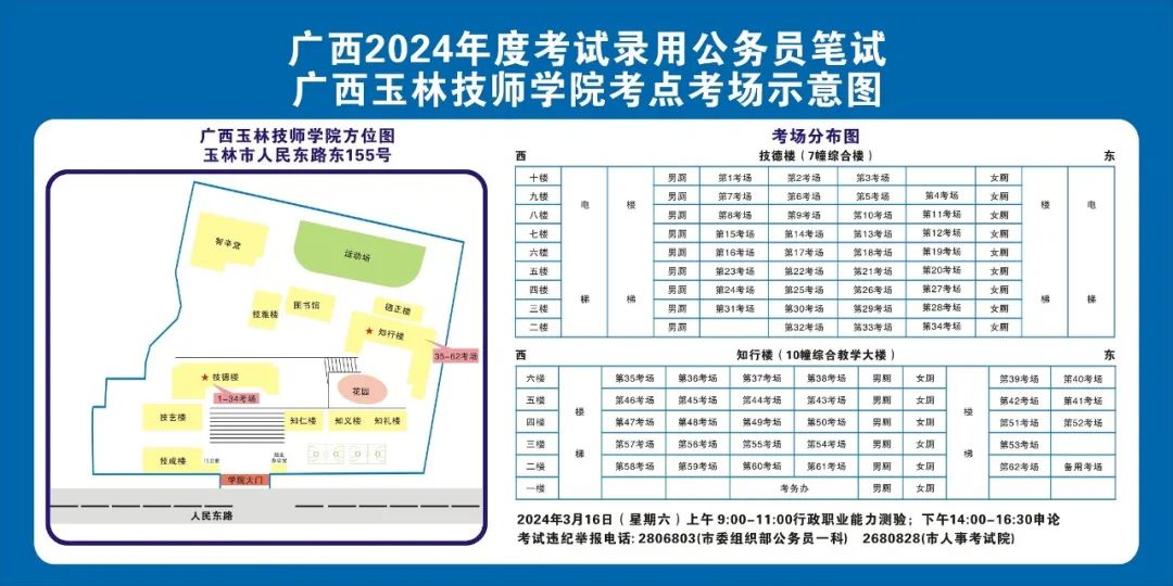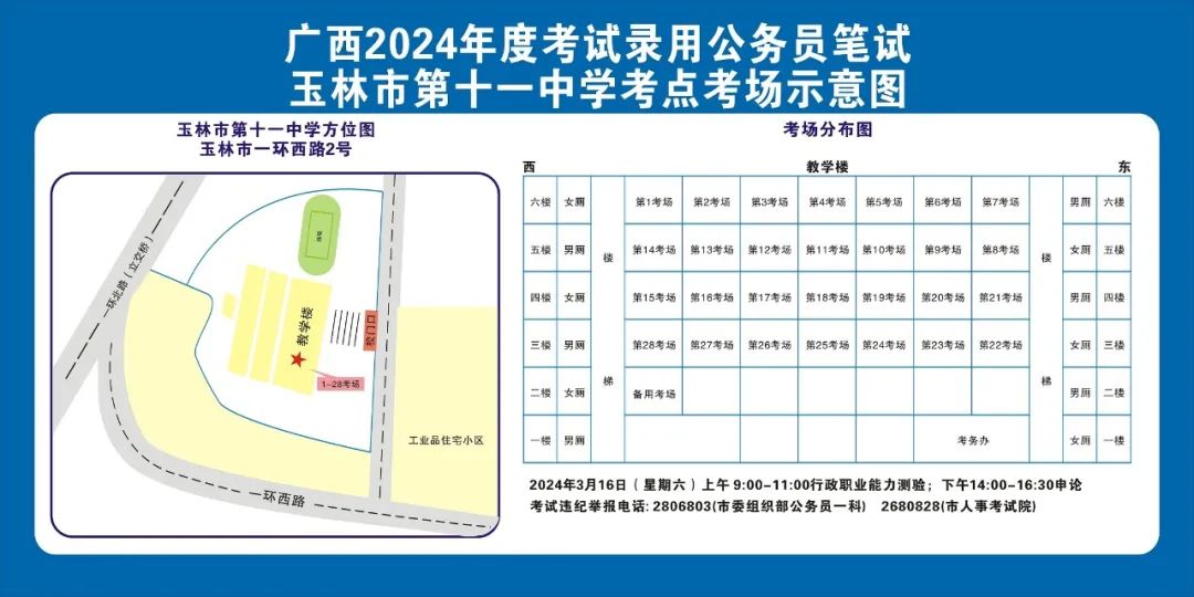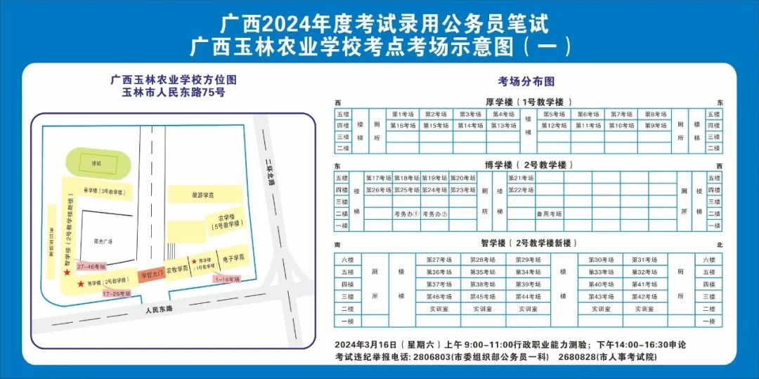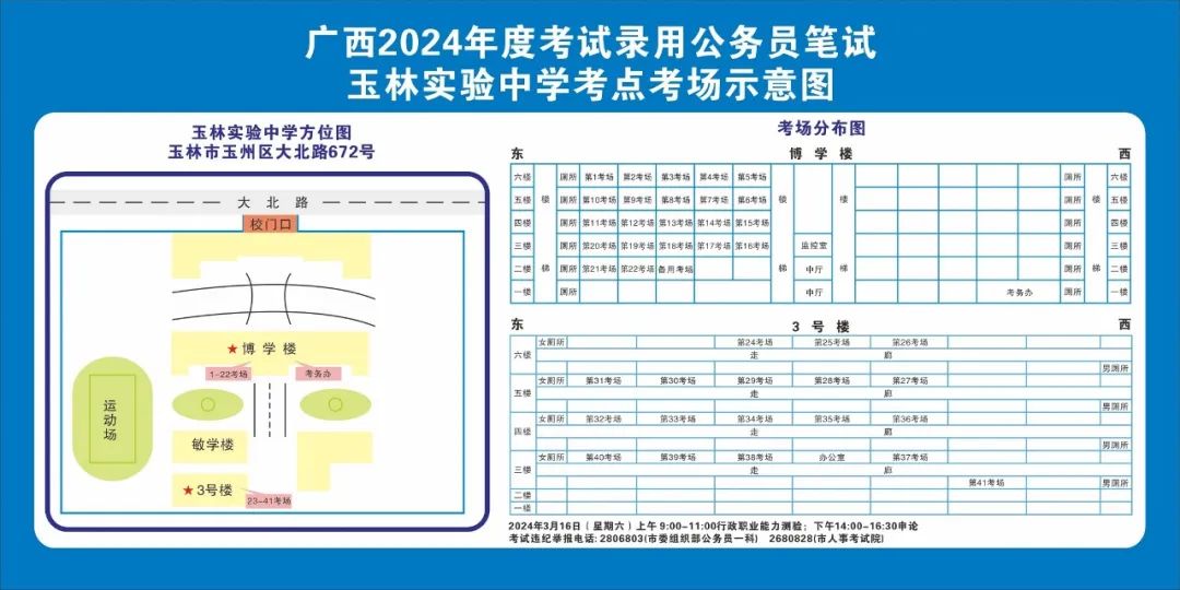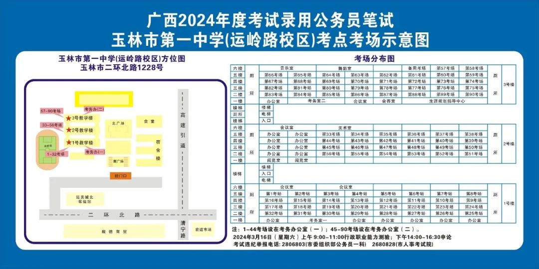 除考試當天考生可以進入考點外,考生不得提前進入考點查看考場(學(xué)校將在大門處擺放考場分布示意圖),玉林考區(qū)10個考點的考場布置情況如下: