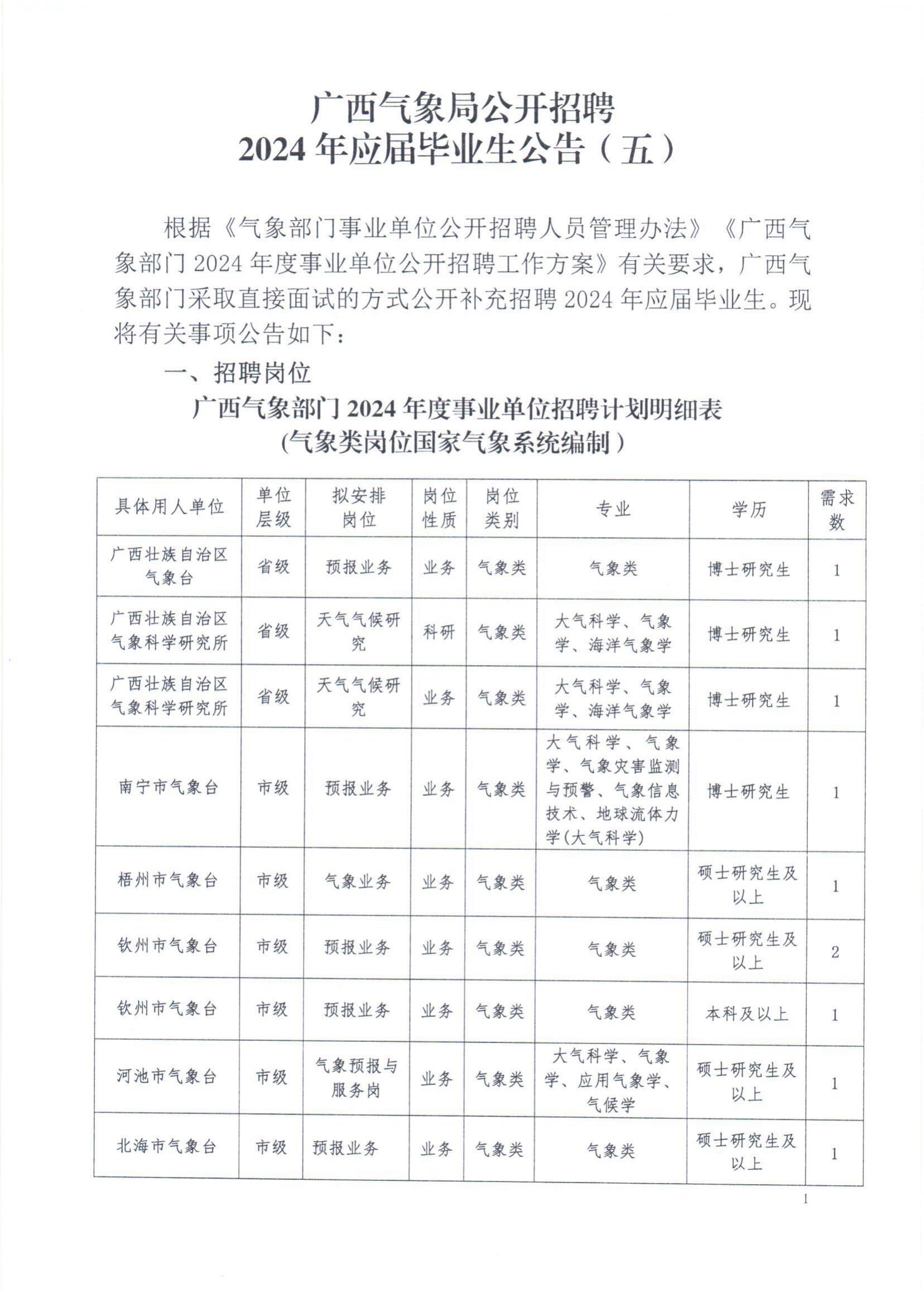 廣西氣象局公開(kāi)招聘2024年度應(yīng)屆畢業(yè)生13人公告(五)