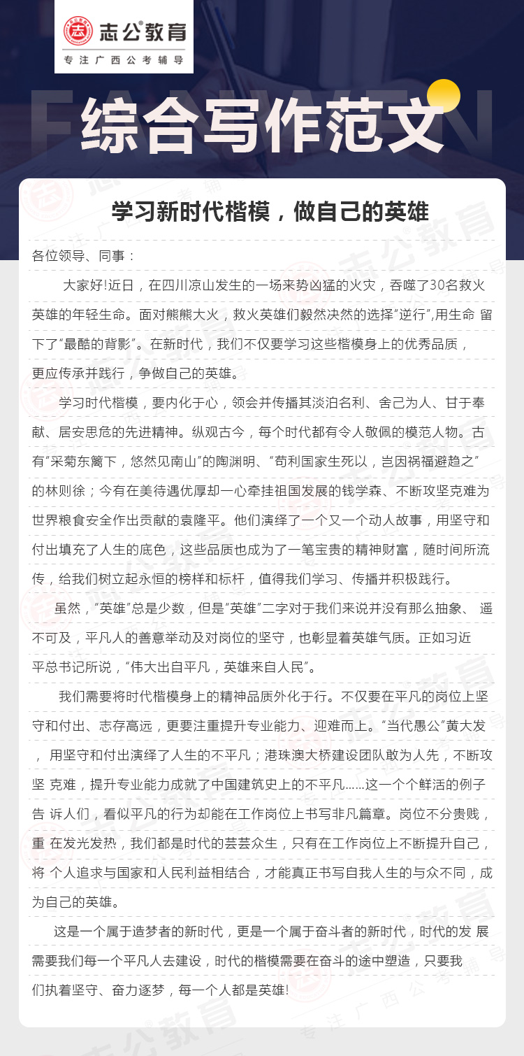 綜合寫作范文七:學(xué)習(xí)新時(shí)代楷模,做自己的英雄