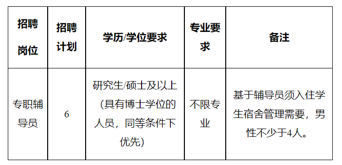 聘用人員享受學(xué)校專職輔導(dǎo)員同等待遇,入職后可考取學(xué)校非實(shí)名編制。