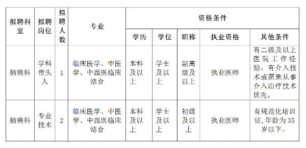 南寧市邕寧區(qū)中醫(yī)醫(yī)院腦病科學科帶頭人、醫(yī)師招聘3人公告
