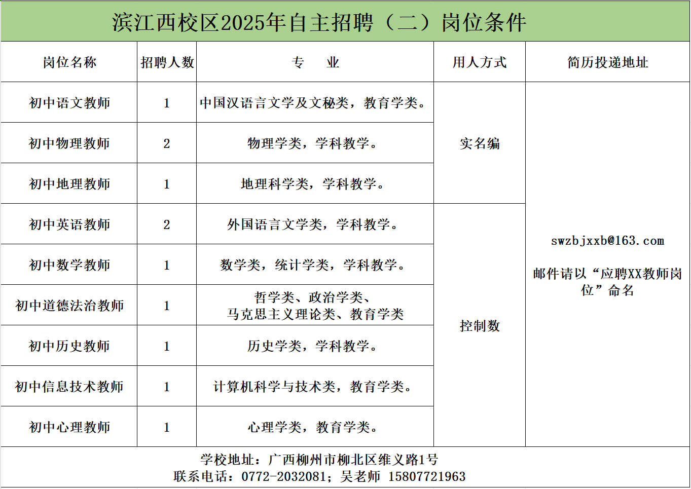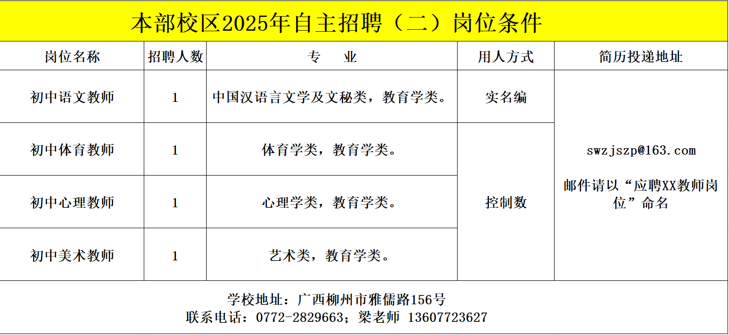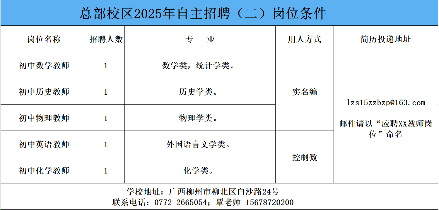 柳州市第十五中學教師招聘