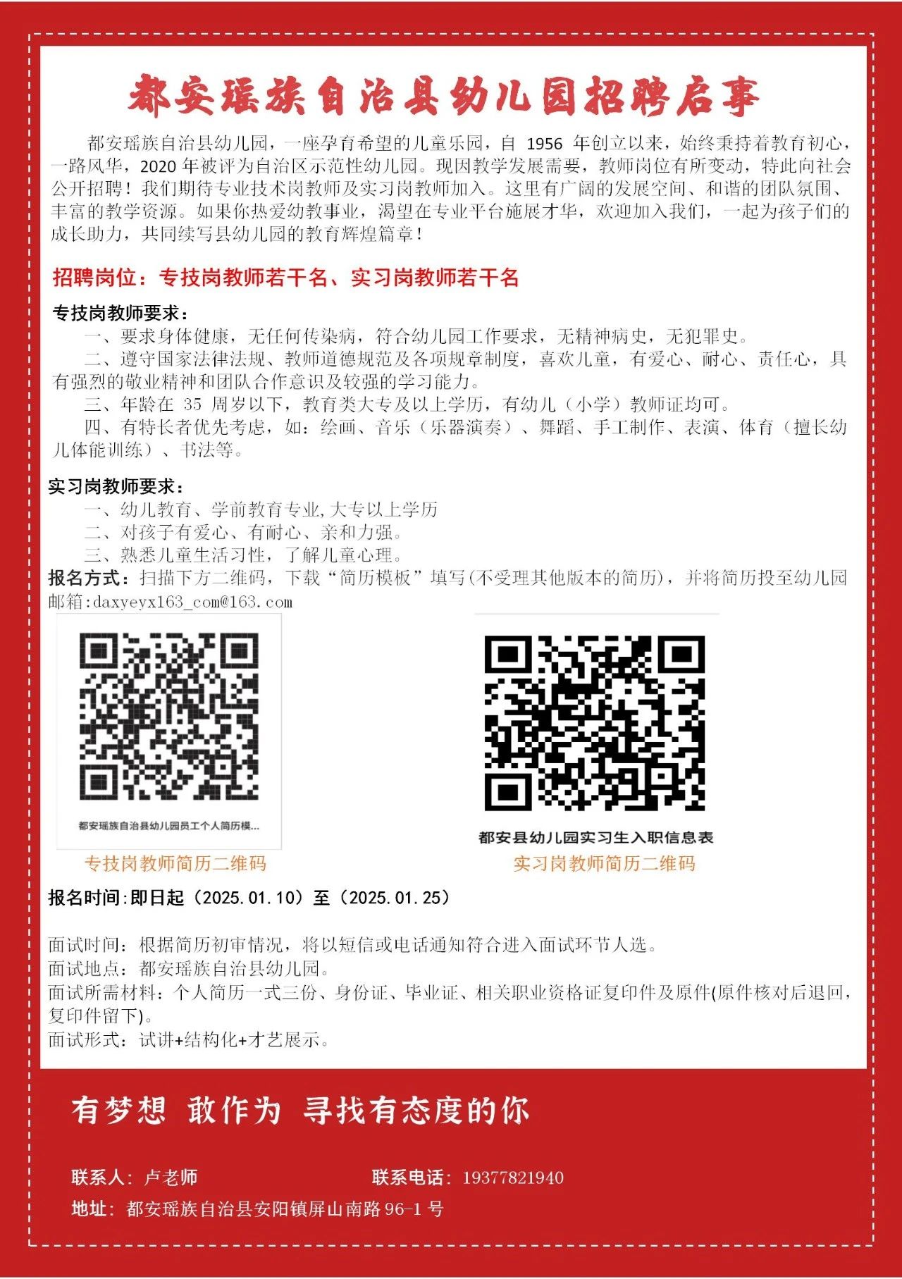 原文標題:都安瑤族自治縣幼兒園招聘啟事