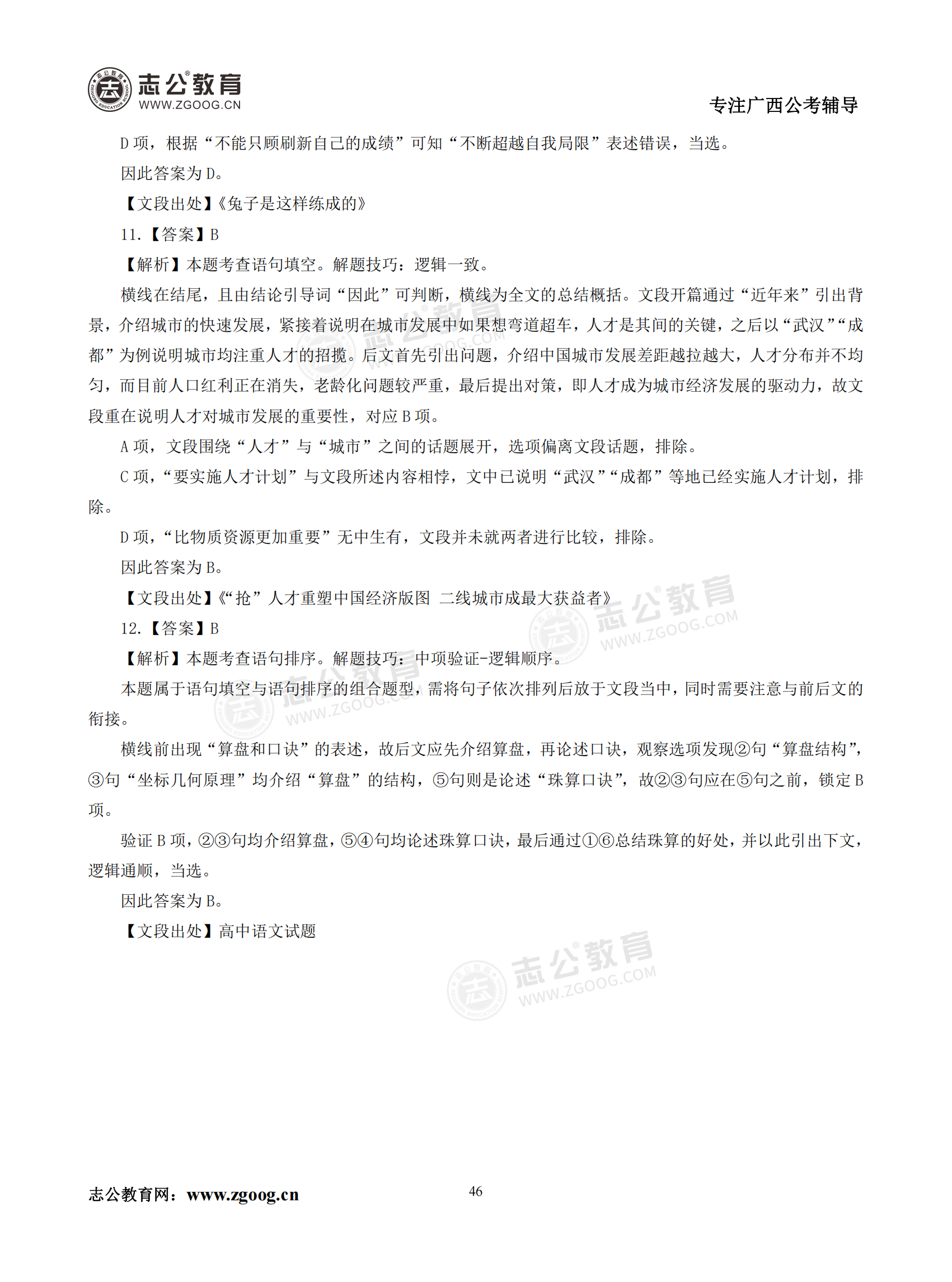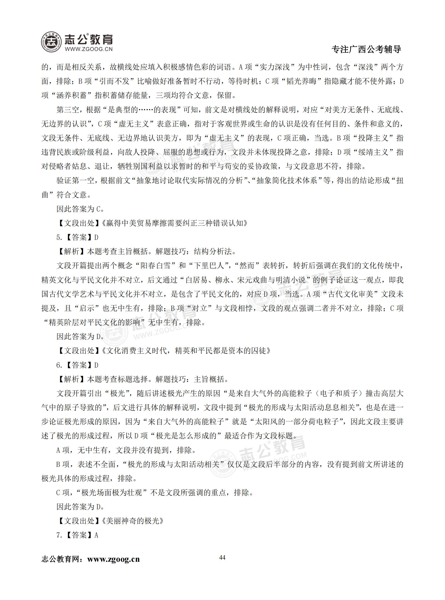 【公考模塊練習(xí)】言語理解題六(答案)
