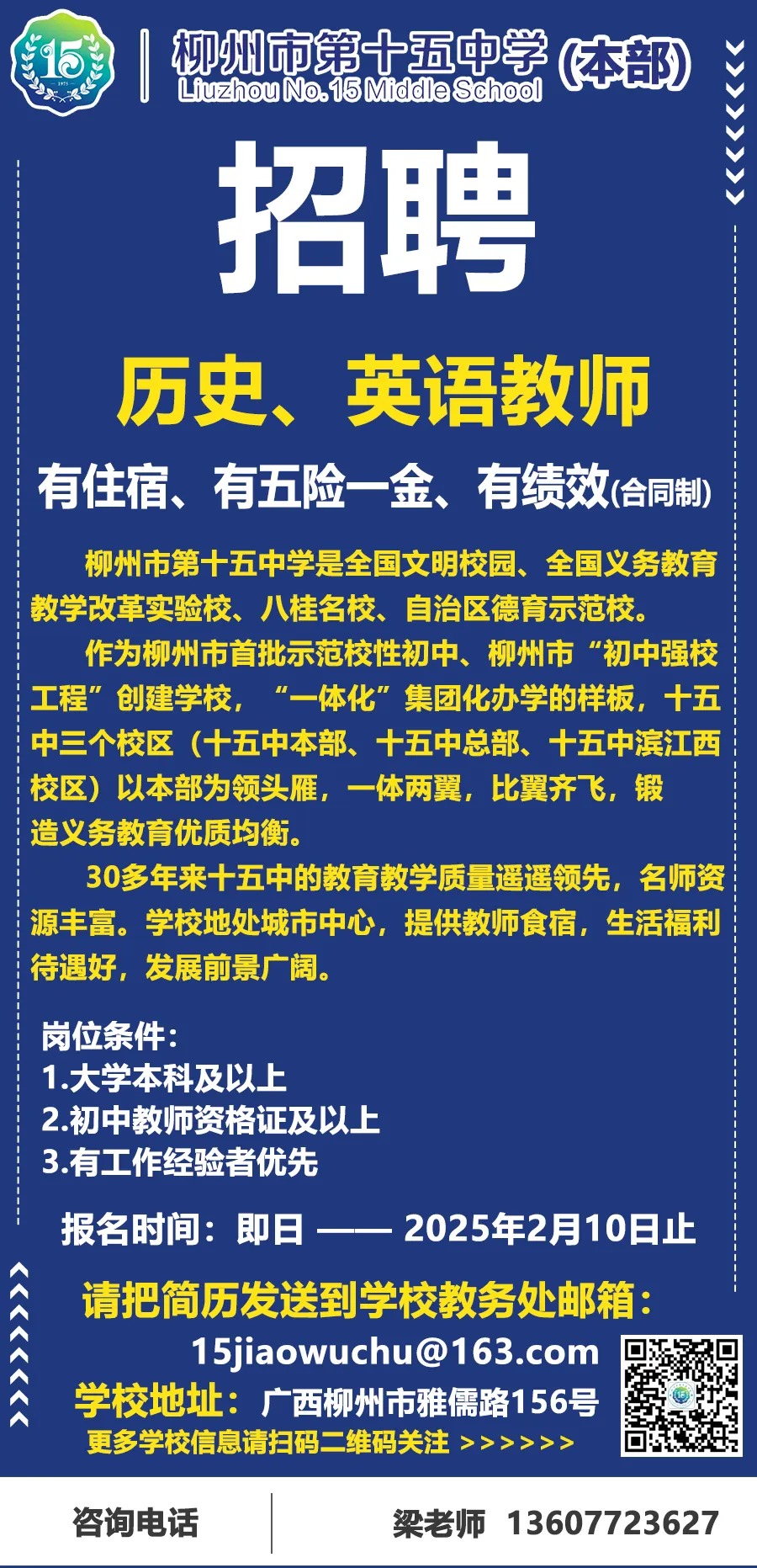 2025年柳州市第十五中學(xué)本部誠(chéng)聘英才