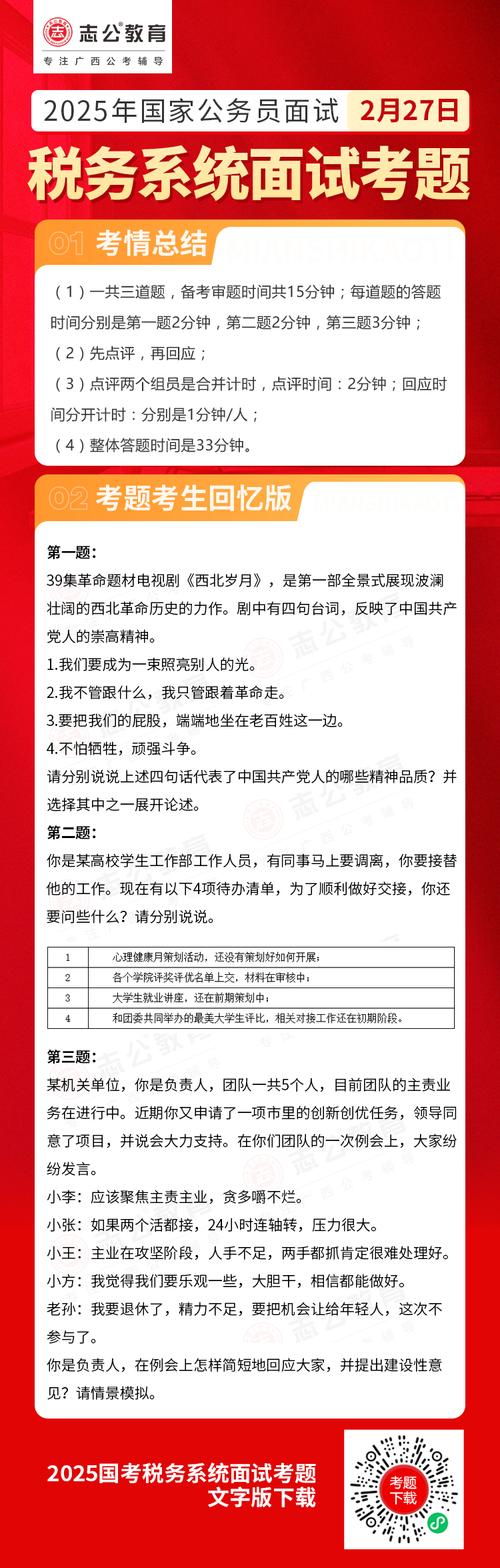 2025年2月27日國考稅務(wù)局面試考題(考生回憶版)