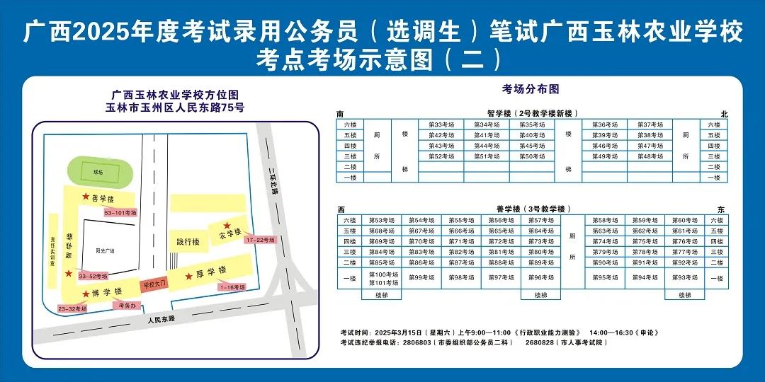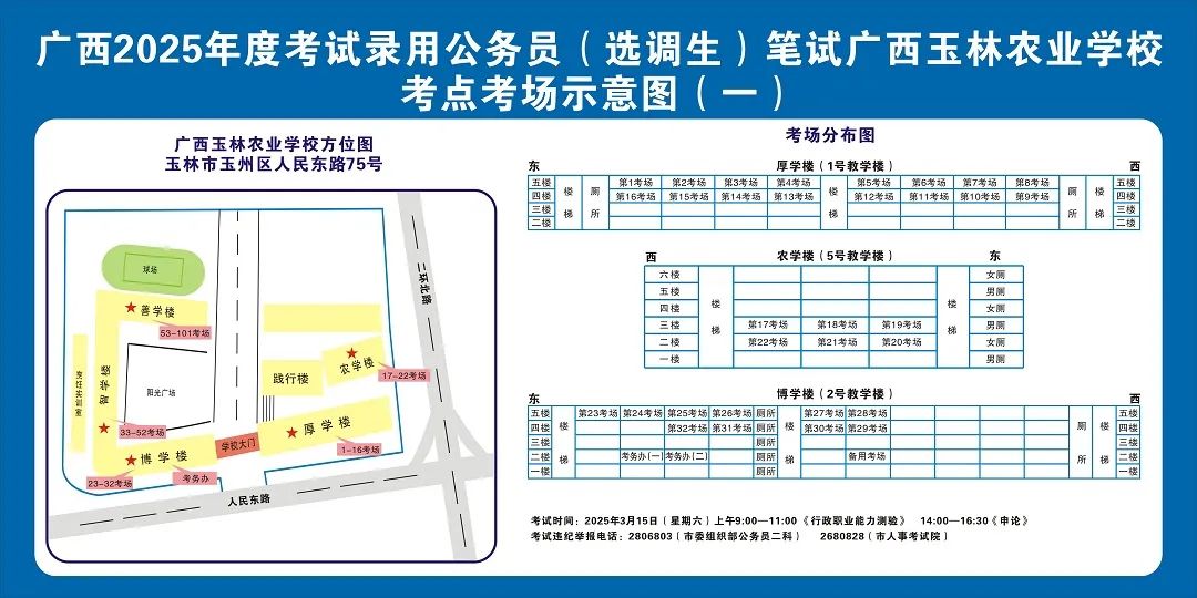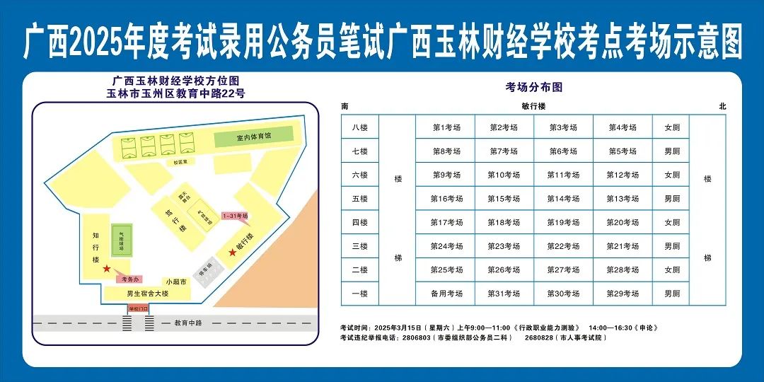 廣西2025年度考試錄用公務(wù)員(選調(diào)生)筆試將于3月15日舉行,為進一步提升玉林考區(qū)服務(wù)保障質(zhì)量,現(xiàn)就有關(guān)注意事項提示如下,請廣大考生做好應(yīng)試準備工作,準確掌握考試時間、考點地址及相關(guān)注意事項。