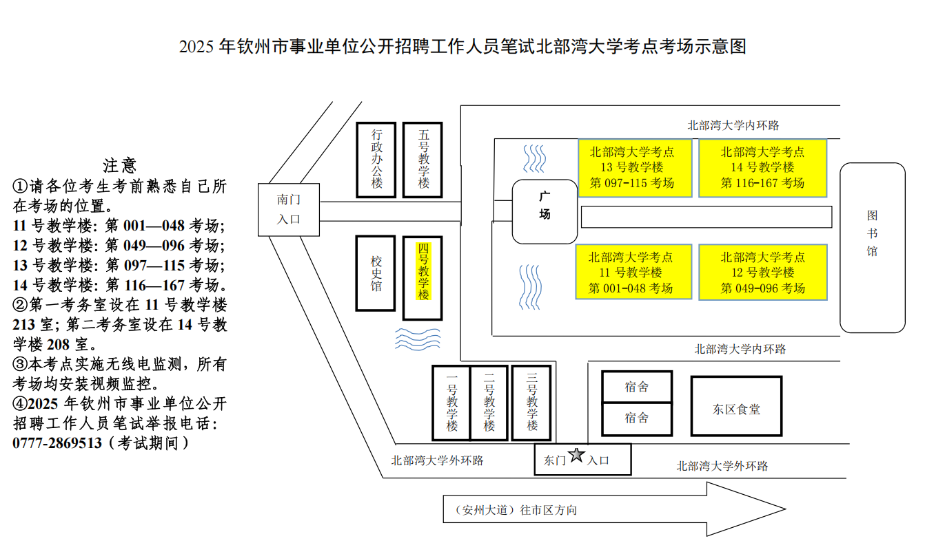 (二)請考生按照本人準(zhǔn)考證上的考點學(xué)校,提前了解學(xué)校所在位置,特別注意不要混淆北部灣大學(xué)考點與北部灣職業(yè)技術(shù)學(xué)??键c。部分考點學(xué)校離市區(qū)有一定距離,請關(guān)注當(dāng)天交通情況和天氣情況,充分考慮路途時間和天氣因素影響,提前謀劃出行時間、路線和交通工具,建議提前60分鐘到達(dá)考點,以免影響正常入場參加考試。