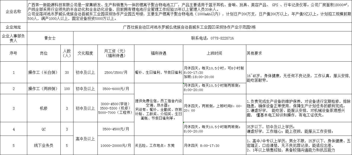 原文標題:2025年4月廣西奔一新能源科技有限公司招聘信息