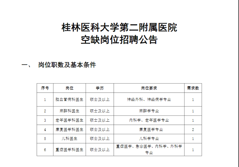 原文標題:桂林醫(yī)科大學第二附屬醫(yī)院空缺崗位招聘公告2025年5月12日