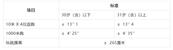 報考人員須參加全部三項體能測評。參加者凡有其中一項不達標或放棄,視為體能測評不合格。體能測評合格,方可進入下一環(huán)節(jié)。