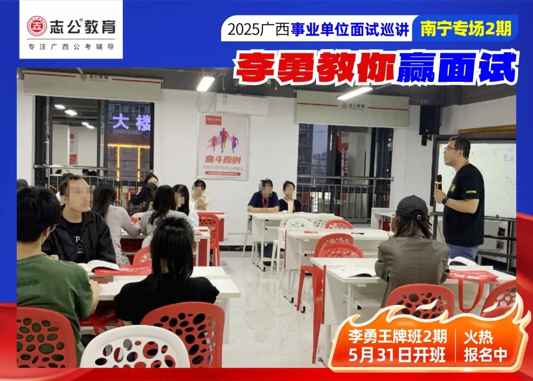 隨著2025廣西事業(yè)單位——李勇教你贏面試【南寧專(zhuān)場(chǎng)2期】線下巡講落幕,這場(chǎng)"面試攻堅(jiān)戰(zhàn)",不僅點(diǎn)燃了備考熱情,更讓志公教育"幫助人才實(shí)現(xiàn)更高質(zhì)量的就業(yè)"的使命,在八桂大地結(jié)出更多碩果。