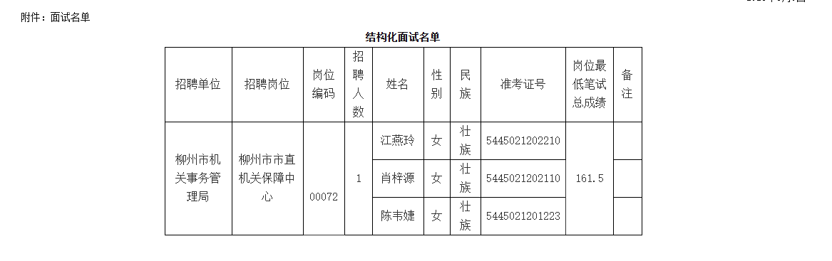 根據《2025年度柳州市事業(yè)單位公開考試招聘工作人員公告》、《關于印發(fā)〈廣西壯族自治區(qū)事業(yè)單位公開招聘工作人員面試工作規(guī)則(試行)〉的通知》(桂人社發(fā)〔2012〕79號)的規(guī)定,柳州市機關事務管理局擬組織所屬事業(yè)單位公招面試,現(xiàn)將相關事宜公告如下。