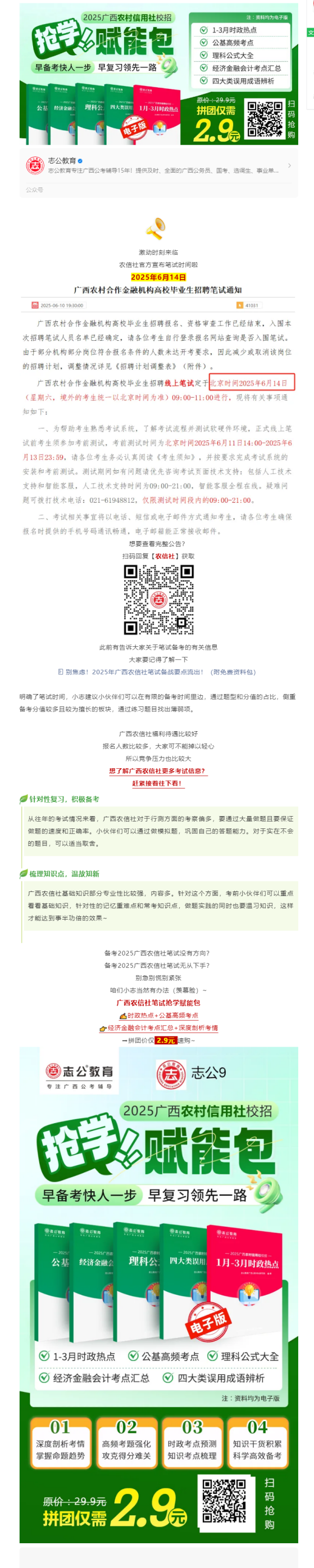 官方通知!廣西農(nóng)信社2025年筆試時(shí)間發(fā)布!速看備考要點(diǎn)……