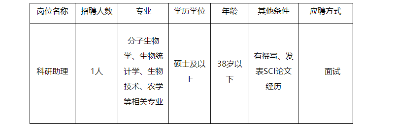 根據(jù)團(tuán)隊(duì)科研試驗(yàn)需要,廣西農(nóng)業(yè)科學(xué)院甘蔗研究所高糖聚合品種改良團(tuán)隊(duì)現(xiàn)面向社會(huì)公開招聘科研助理(編制外工作人員)1名,現(xiàn)將有關(guān)事項(xiàng)公告如下: