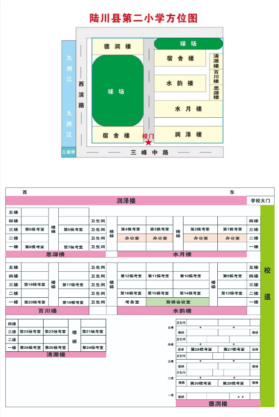 二、考點(diǎn)候考室分布示意圖