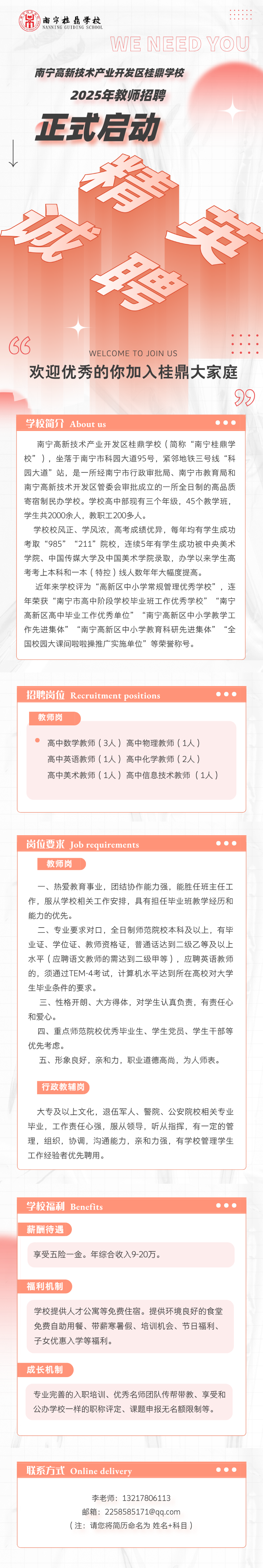 原文標題:南寧桂鼎學校2025年秋季學期教師招聘公告