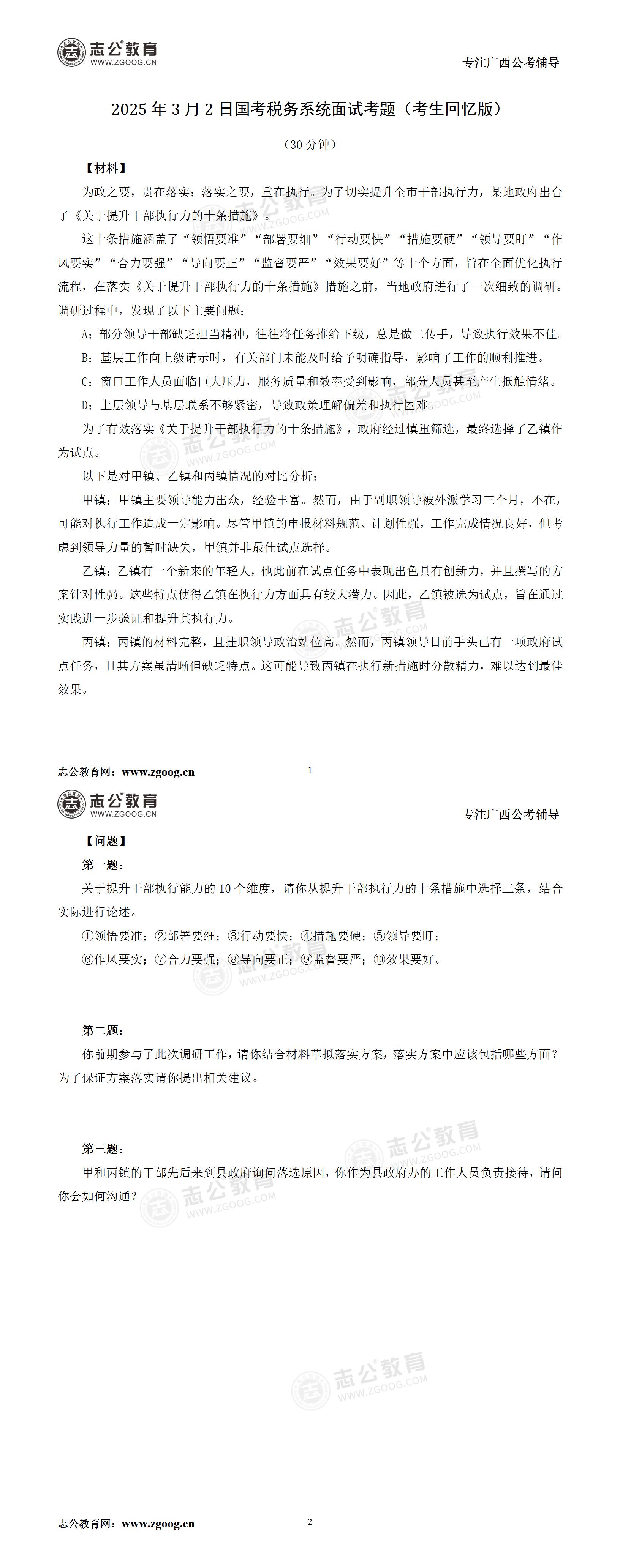 2025年國考稅務系統(tǒng)3月2日面試考題(考生回憶版)