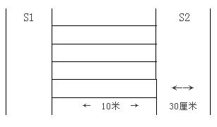 場地器材:10米長的直線跑道若干,在跑道的兩端線(S1和S2)外30厘米處各劃一條線(圖1)。木塊(5厘米×10厘米)每道3塊,其中2塊放在S2線外的橫線上,一塊放在S1線外的橫線上。秒表若干塊,使用前應進行校正。