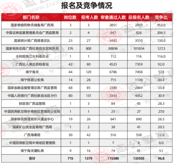 廣西海關(guān)系統(tǒng)總體:平均競爭比約為31:1,競爭熱度相對較低。