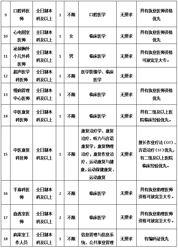 6. 年齡18-35周歲,具有主治醫(yī)師資格可放寬至45周歲。