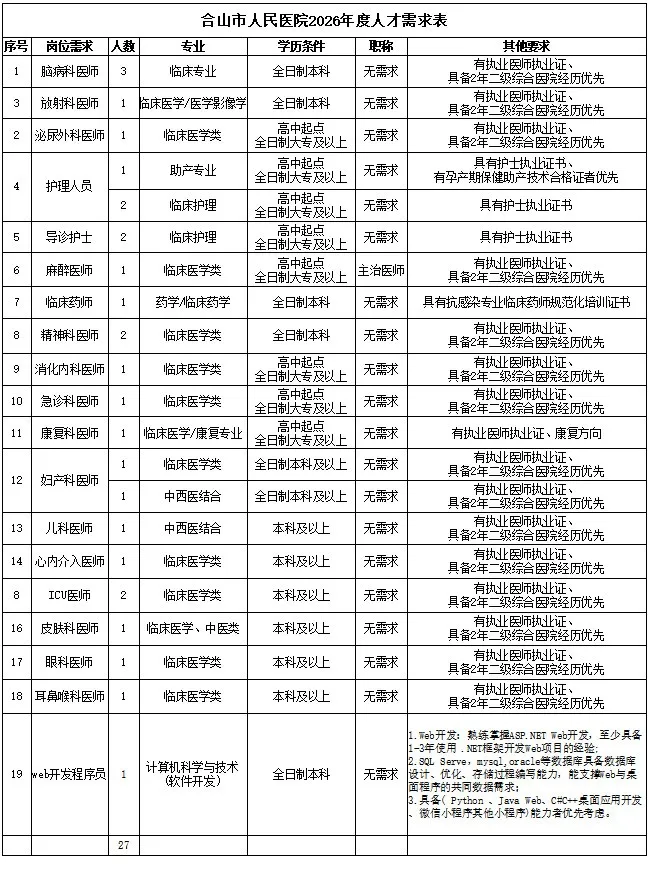 原文標(biāo)題:合山市人民醫(yī)院2026年人才招聘公告