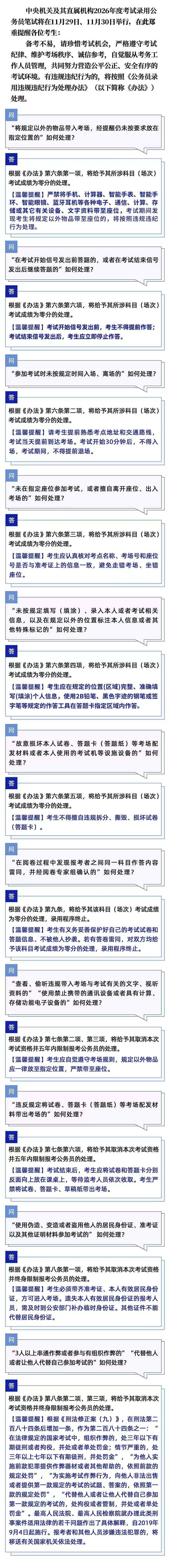 原文標(biāo)題:中央機(jī)關(guān)及其直屬機(jī)構(gòu)2026年度考試錄用公務(wù)員筆試有關(guān)違規(guī)違紀(jì)行為處理溫馨提醒