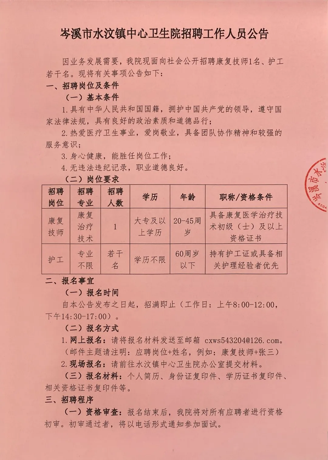2025年梧州岑溪市水汶鎮(zhèn)中心衛(wèi)生院招聘護士和康復(fù)技師