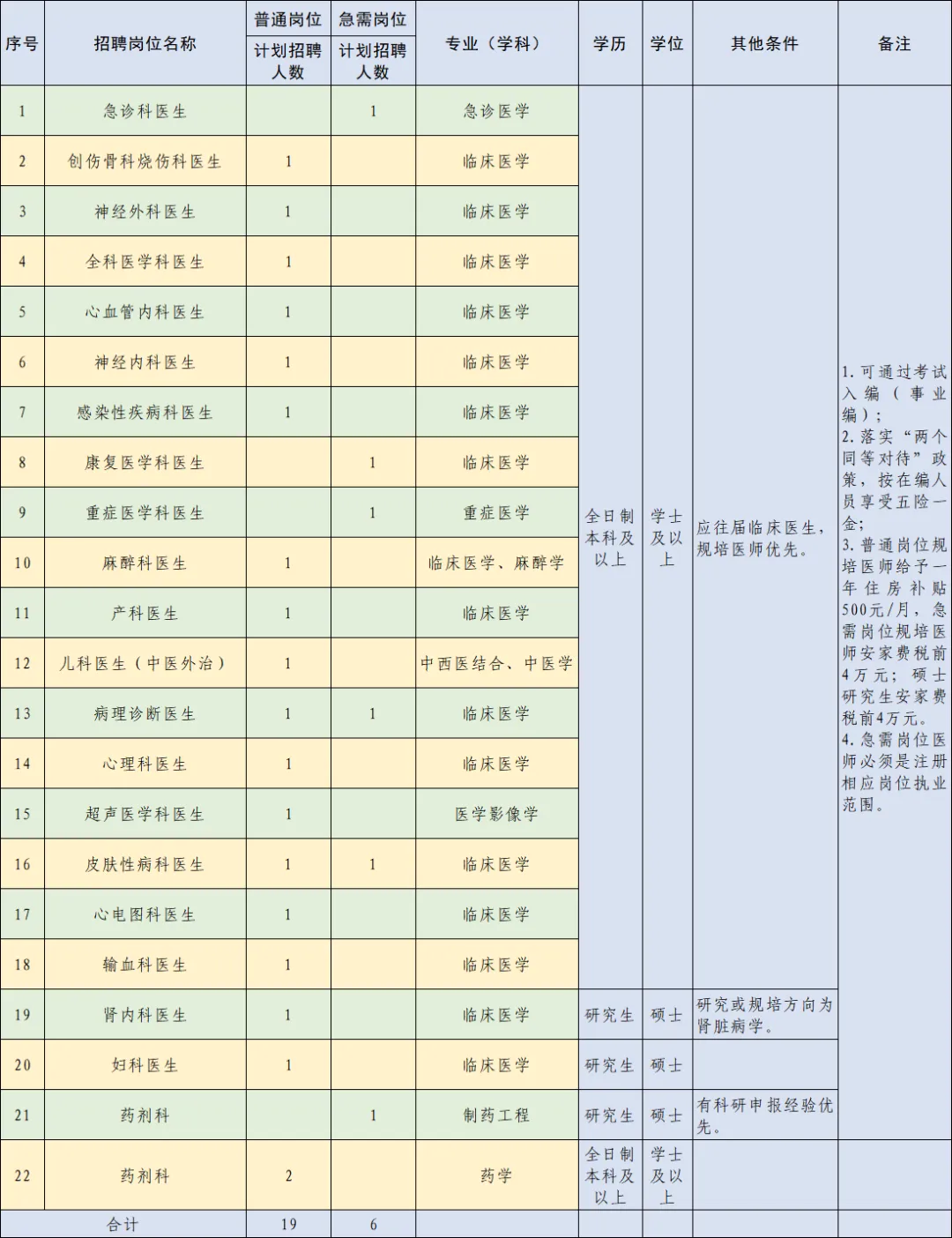 2.具有規(guī)培合格證的醫(yī)生依照國(guó)衛(wèi)辦科教發(fā)〔2021〕18號(hào)文件,落實(shí)“兩個(gè)同等對(duì)待”政策,即“面向社會(huì)招收的普通高校應(yīng)屆畢業(yè)生培訓(xùn)對(duì)象培訓(xùn)合格當(dāng)年在醫(yī)療衛(wèi)生機(jī)構(gòu)就業(yè)的,在招聘、派遣、落戶(hù)等方面,按當(dāng)年應(yīng)屆畢業(yè)生同等對(duì)待。對(duì)經(jīng)住培合格的本科學(xué)歷臨床醫(yī)師,在人員招聘、職稱(chēng)晉升、崗位聘用、薪酬待遇等方面,與臨床醫(yī)學(xué)、中醫(yī)專(zhuān)業(yè)學(xué)位碩士研究生同等對(duì)待”。普通崗位規(guī)培醫(yī)師給予一年住房補(bǔ)貼500元/月,急需崗位規(guī)培醫(yī)師安家費(fèi)稅前4萬(wàn)元,急需崗位醫(yī)師必須注冊(cè)相應(yīng)崗位執(zhí)業(yè)范圍。