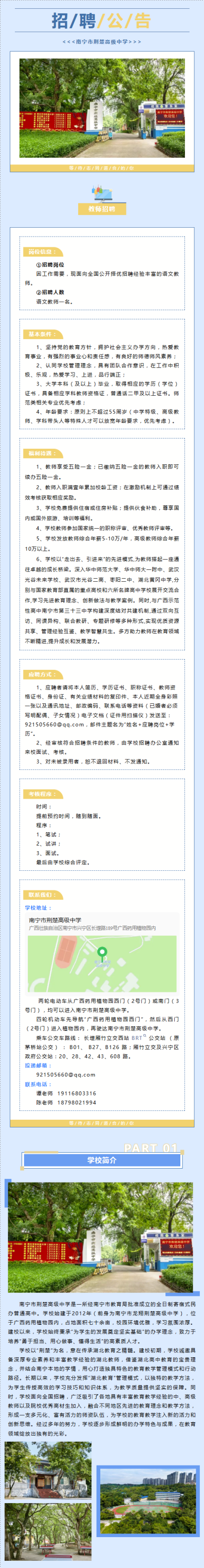 原文標(biāo)題:南寧市荊楚高級中學(xué)招聘語文教師
