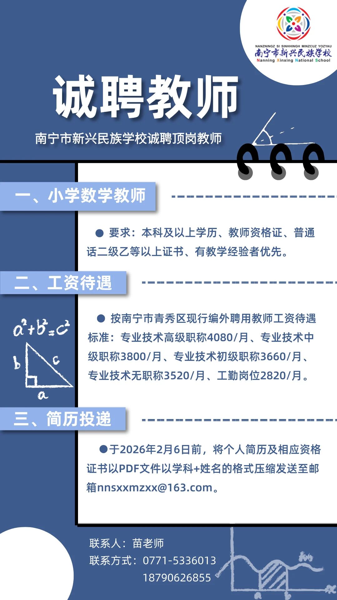 2026年南寧市新民中學(xué)誠(chéng)聘教師